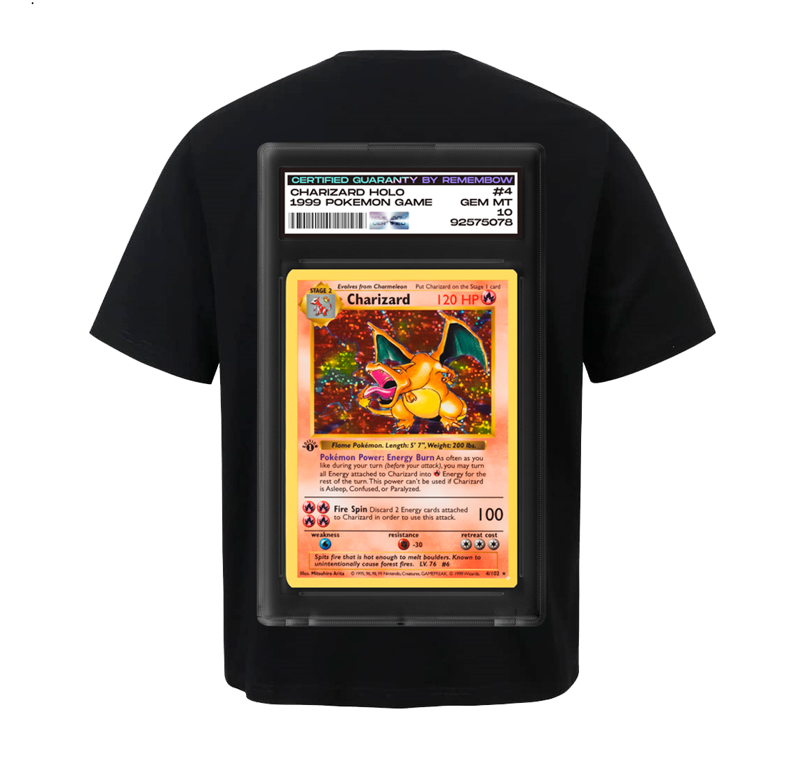 De la colaboración con la fiesta Remembow, del reconocido DJ Álvaro Guerra, nace la edición Charizard: ¡una prenda imprescindible para tu armario! Camiseta oversize con tela printable HQ cosida en la espalda. (Camiseta Opción OVERSIZE)